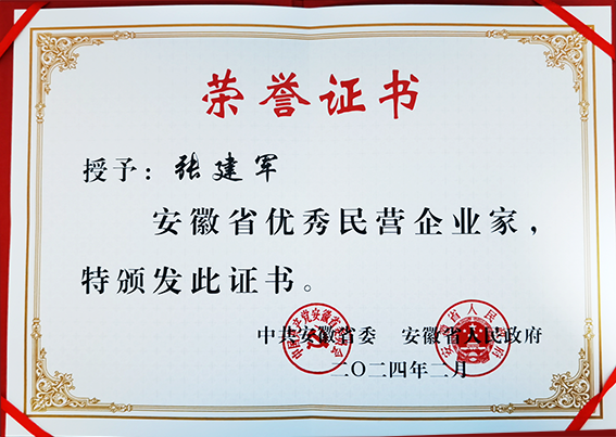 热烈祝贺张建军董事长荣获“安徽省优异民营企业家”称呼